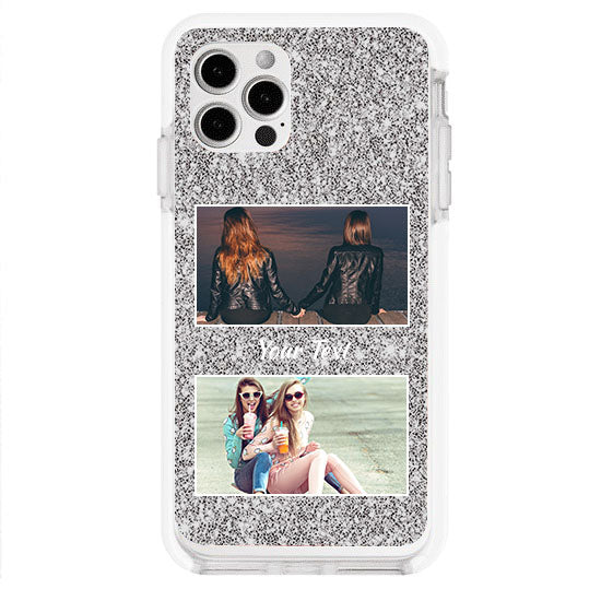 כיסוי נצנצים כסף דאבל שם ותמונה אייפון 12 פרו מקס
