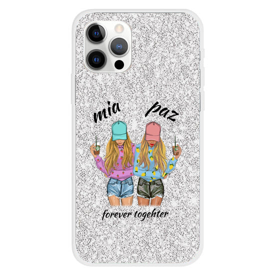 כיסוי שם FOREVER TOGHETER כסף נצנצים אייפון 12 PRO MAX